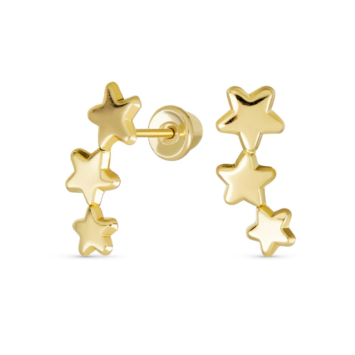 Radiating exquisite celestial style with irresistibly on trend appeal, you will be simply enchanted by these gold 3 mini graduated stars crawl on ear lobe.