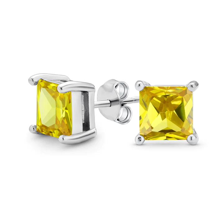 These sterling silver studs hold a 7mm, square, simulated pink tourmaline, princess cut CZ. They make the perfect gift for October babies, and people with pierced ears and chic style.